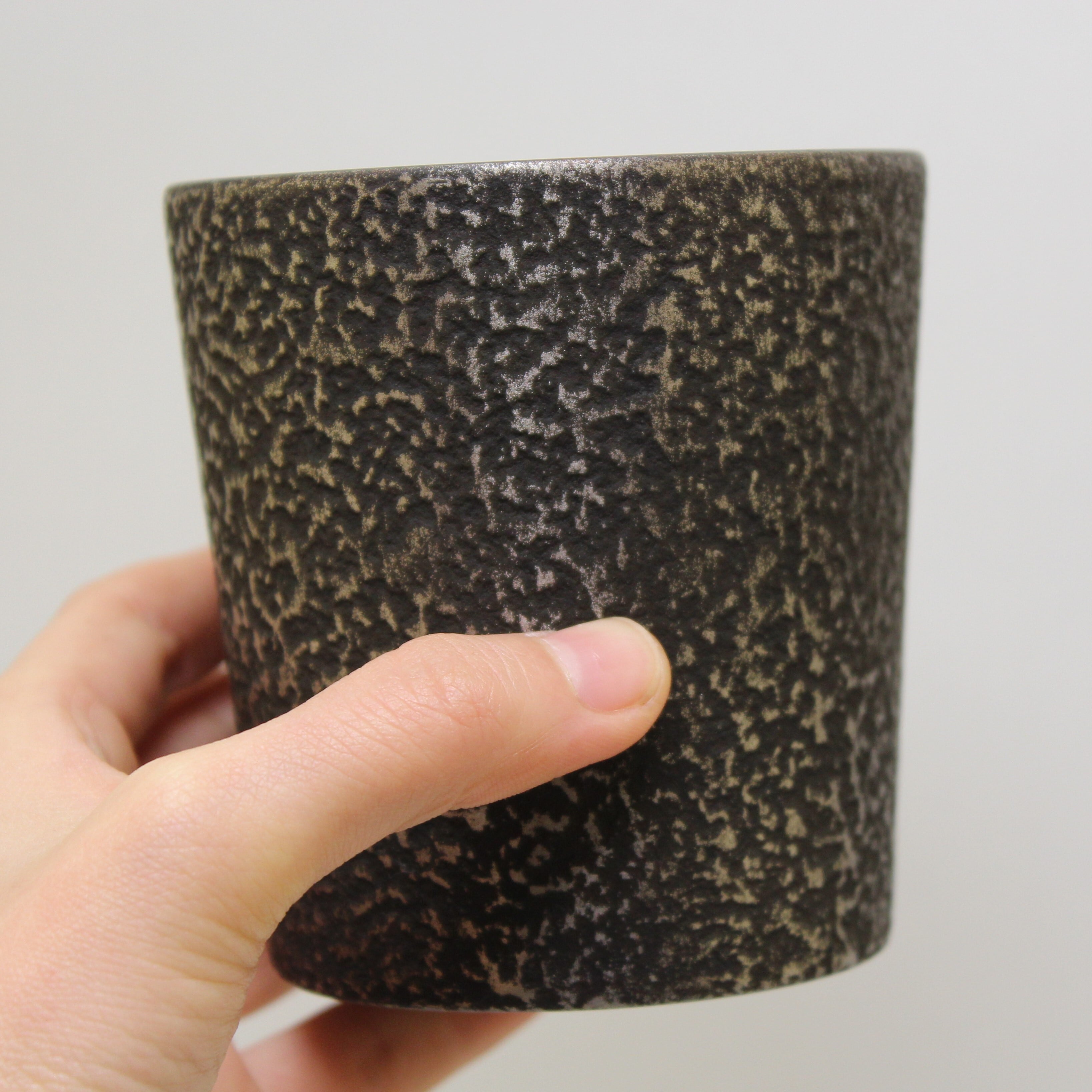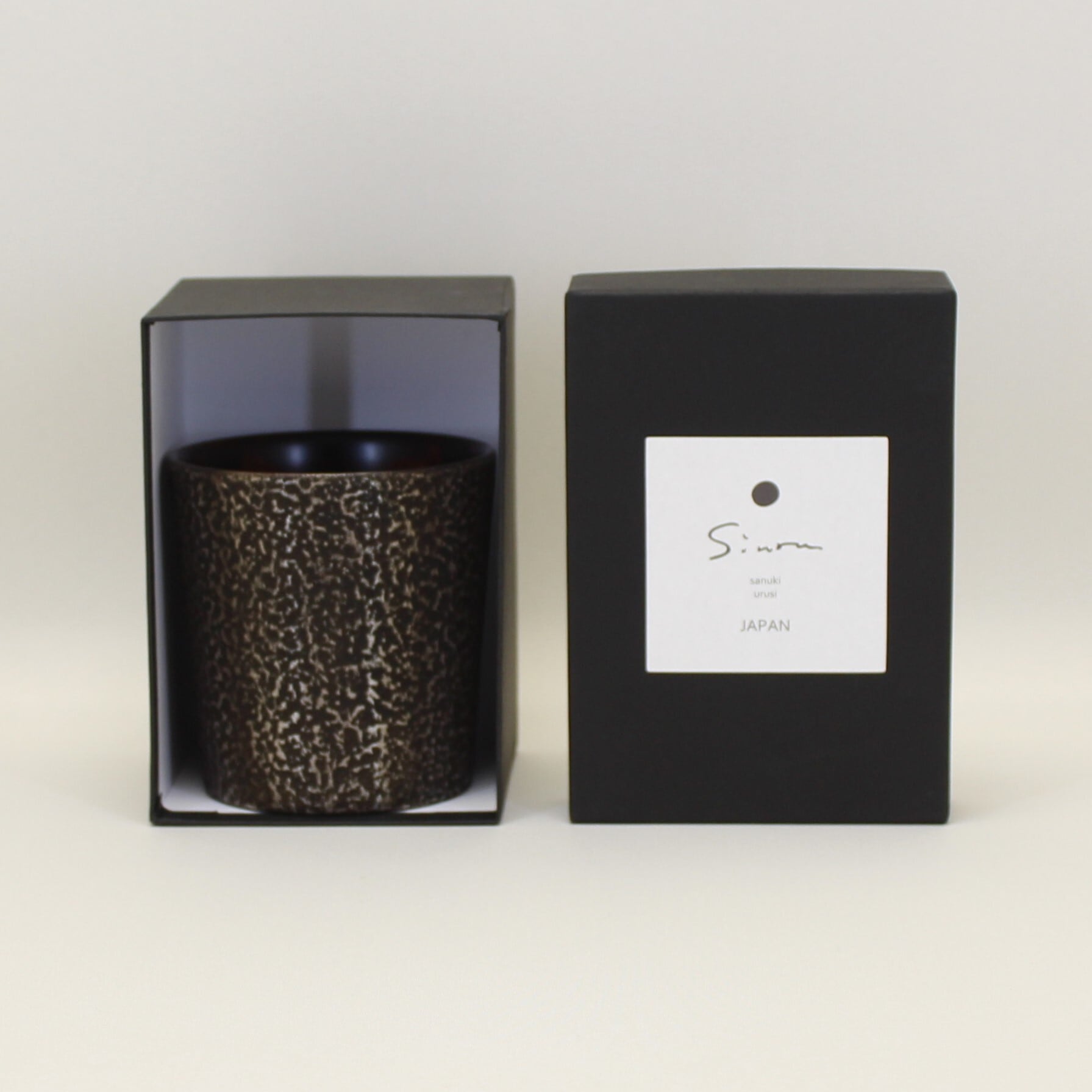 外側に錫粉を蒔き、研ぎ上げることでメタリックな質感にしました。