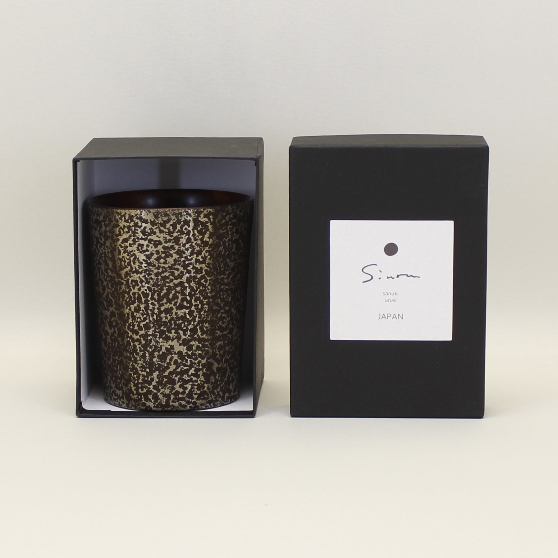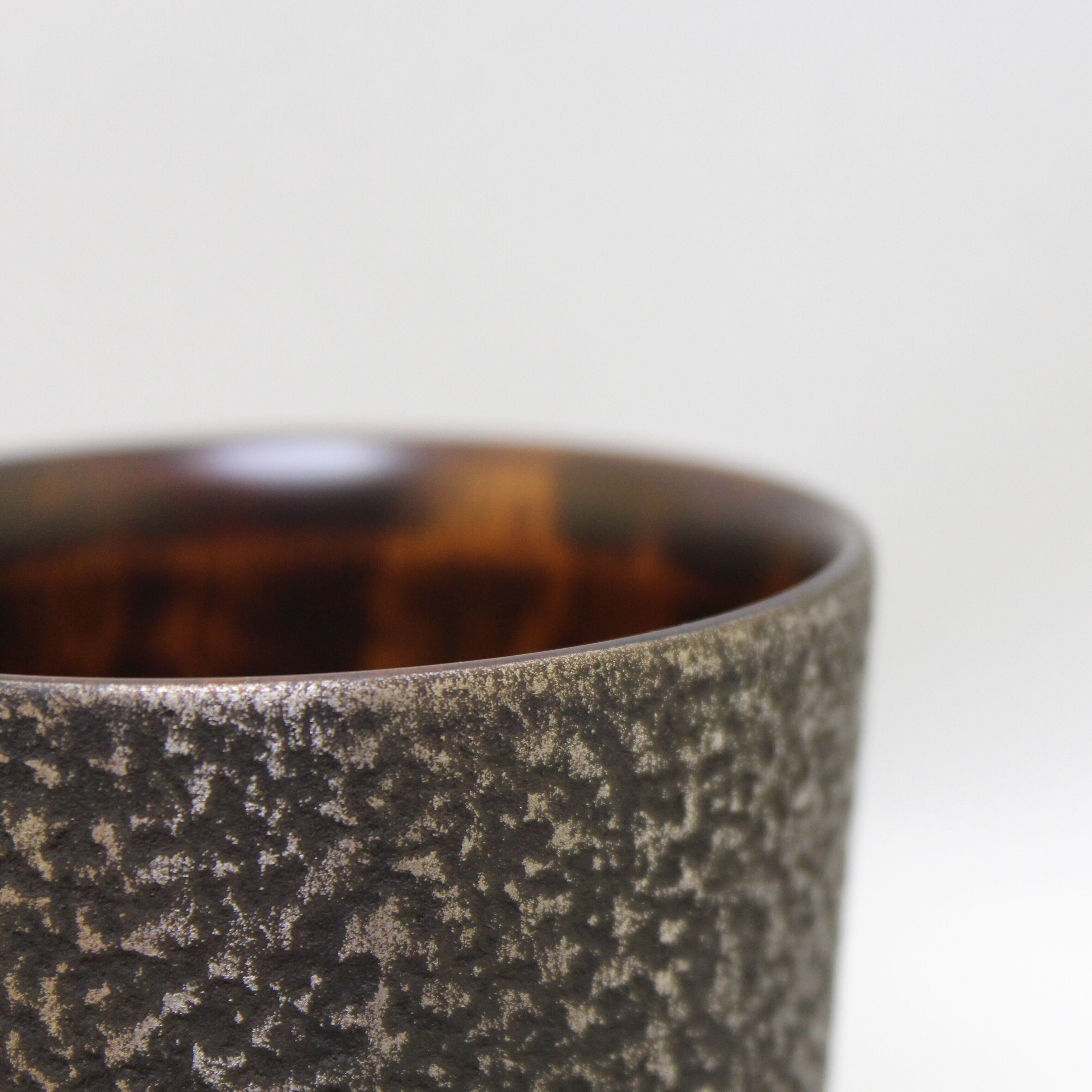 外側に錫粉を蒔き、研ぎ上げることでメタリックな質感にしました。