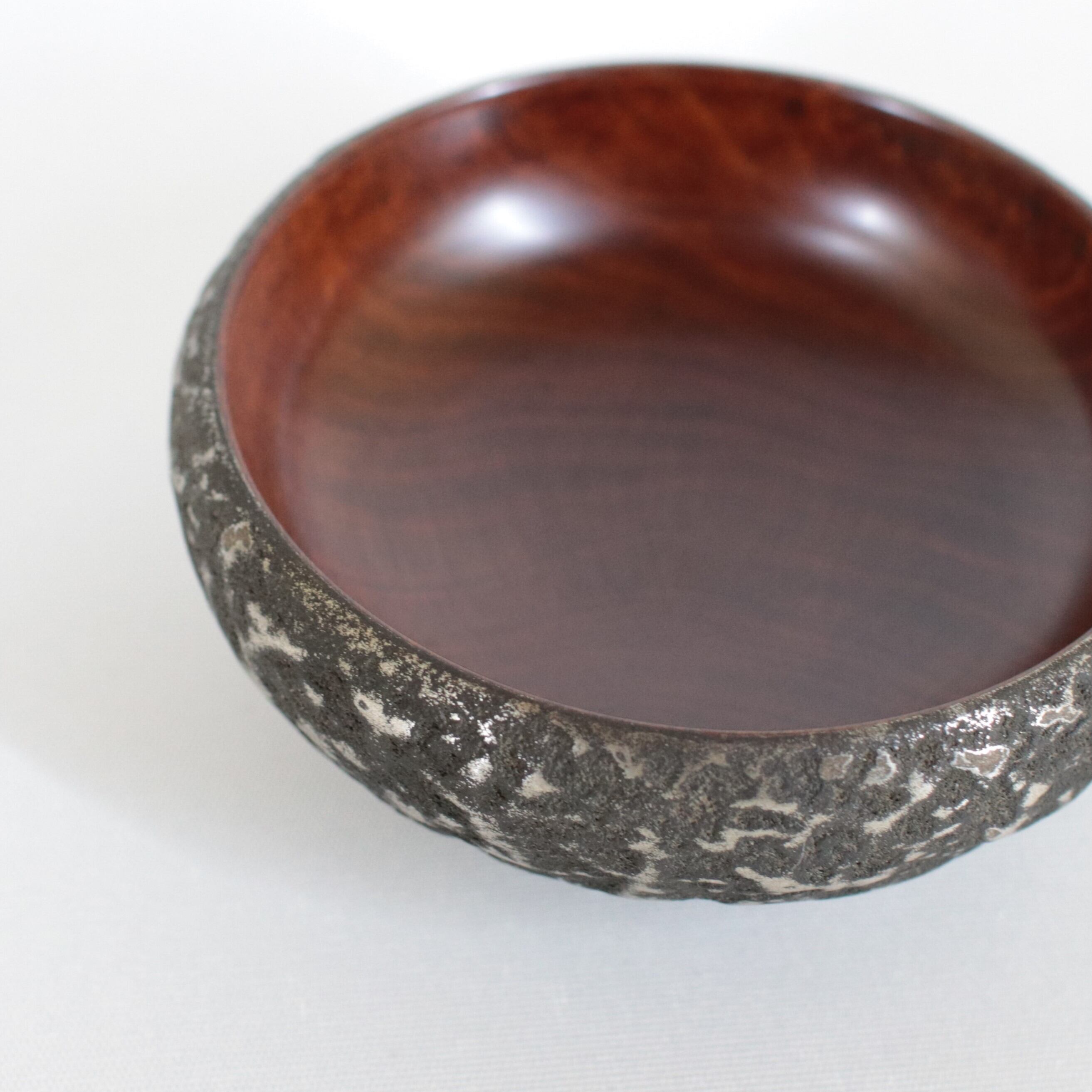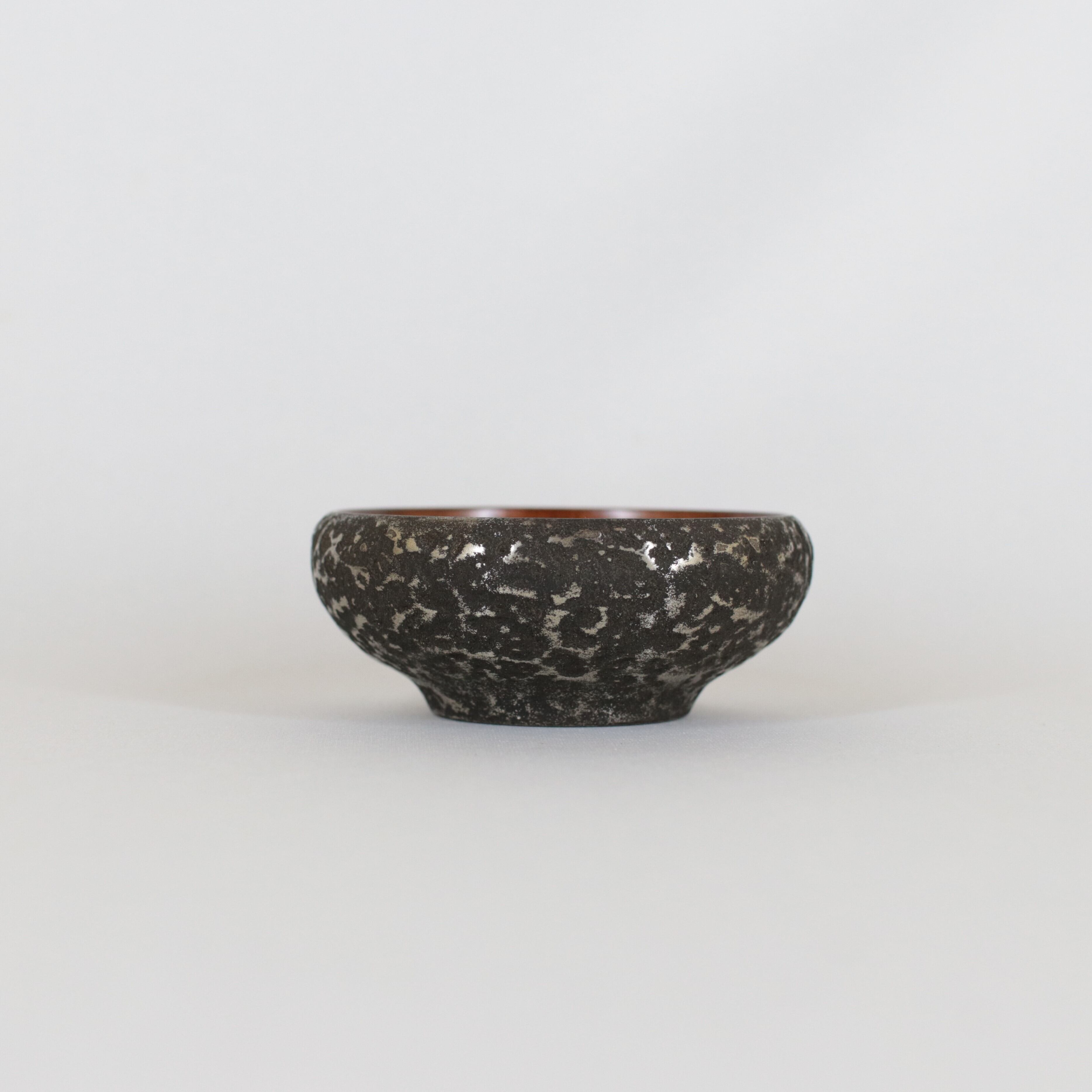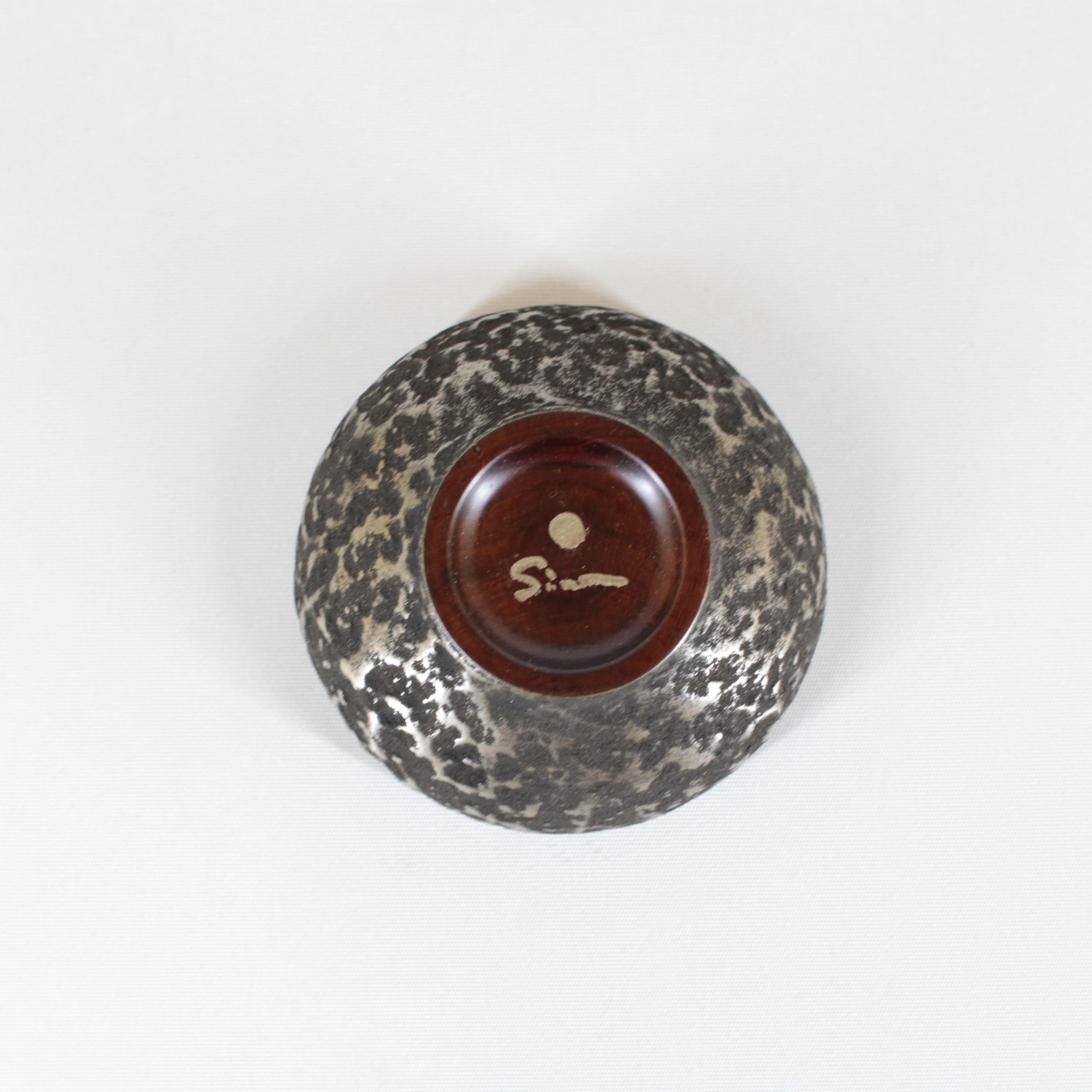 外側に錫粉を蒔き、研ぎ上げることでメタリックな質感にしました。