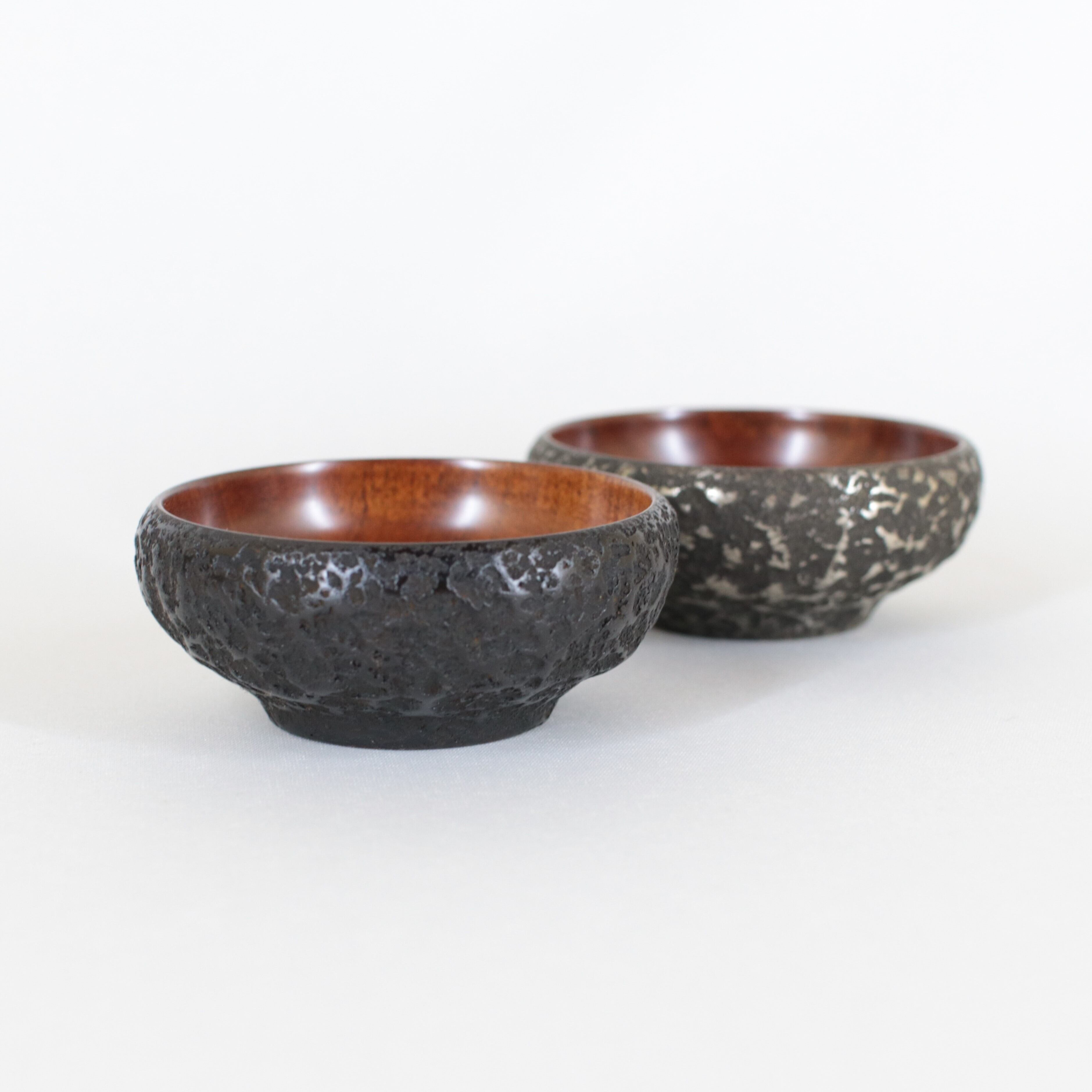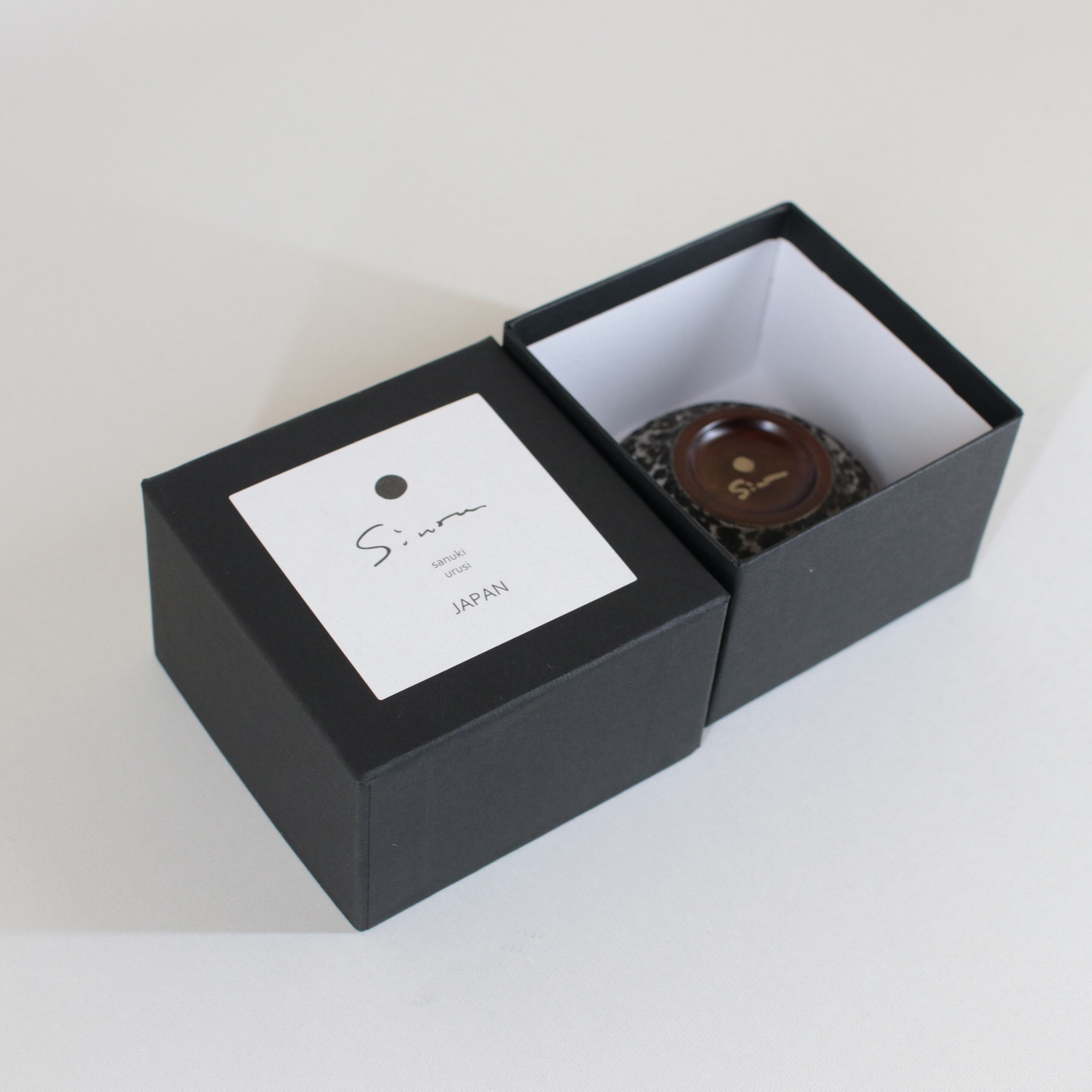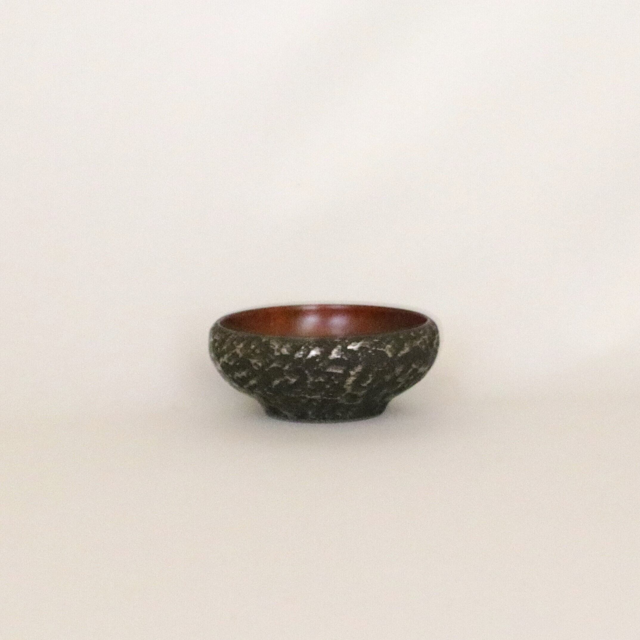 外側に錫粉を蒔き、研ぎ上げることでメタリックな質感にしました。